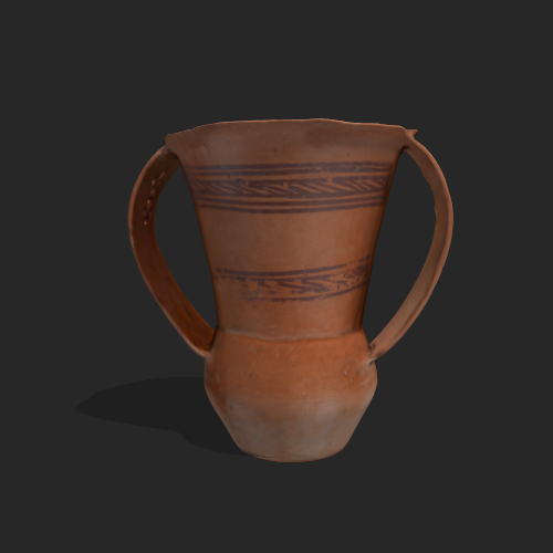 齐家文化平行线纹镂空双耳彩陶罐 陶质、敞口、长颈、颈下斜收、鼓腹、腹较小,口、腹部有双大耳,平底,耳部有三角形镂孔,颈部饰平行线纹,器形独特精美。大双耳罐是齐家文化的典型器物,多为素面陶,这件器物应属于齐家文化陶器中的极品。