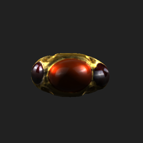 唐嵌宝石金戒指 榆中县城关镇朱家湾唐代石棺墓出土,国家一级文物。戒指长2.7厘、宽2.7厘米、高1.5厘米,重0.021千克。金质,戒面正中镶嵌红宝石一颗,两边各嵌紫宝石两颗,戒面上有四个小凹坑,是原镶嵌的宝石脱落所致。该枚戒指质地纯正,宝石晶莹透亮,造型和工艺明显带有阿拉伯文化特色,反映了唐代中西方经贸、文化交流的繁盛。 戒指为石棺墓主人慕容仪所有,慕容仪,字辅贤,昌黎(今辽宁义县)人,生于青海国王昌黎鲜卑族慕容氏家族,其身份为交河郡王麴崇裕的夫人。 史料记载:唐朝在征服吐谷浑[tǔ yù hún]后,